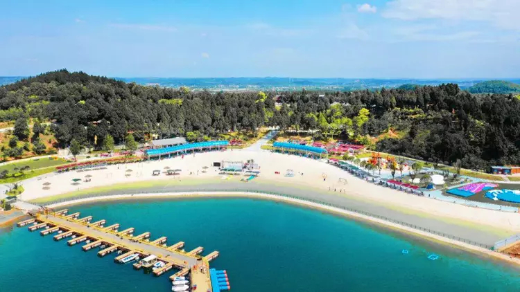 綿陽(yáng)仙海親水灣沙灘樂(lè)園:游客譽(yù)為“綿陽(yáng)馬爾代夫”
